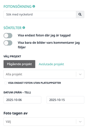 I den vänstra panelen kan du filtrera visningen av bilder efter: