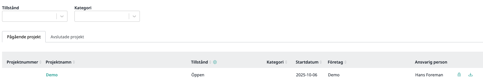1. Logga in på Buildies webbapp2. Välj "Projekt" i Företagsmenyn.