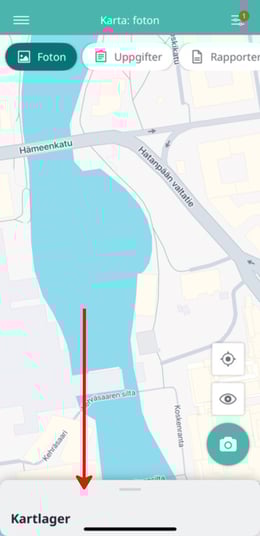 2. Längst ner på kartan finns Kartlager-fältet, som du öppnar genom att svepa fältet uppåt.