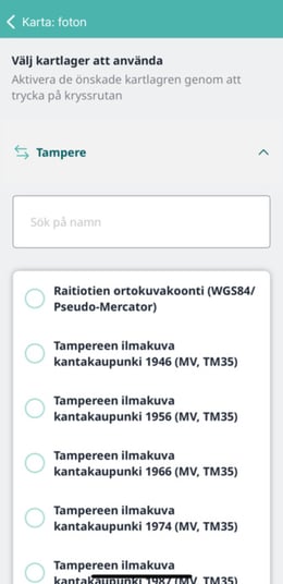 4. Välj de WMS-/WFS-kartlager du vill använda och gå tillbaka till Kartlager-fältet genom att trycka på pilen i det övre hörnet.