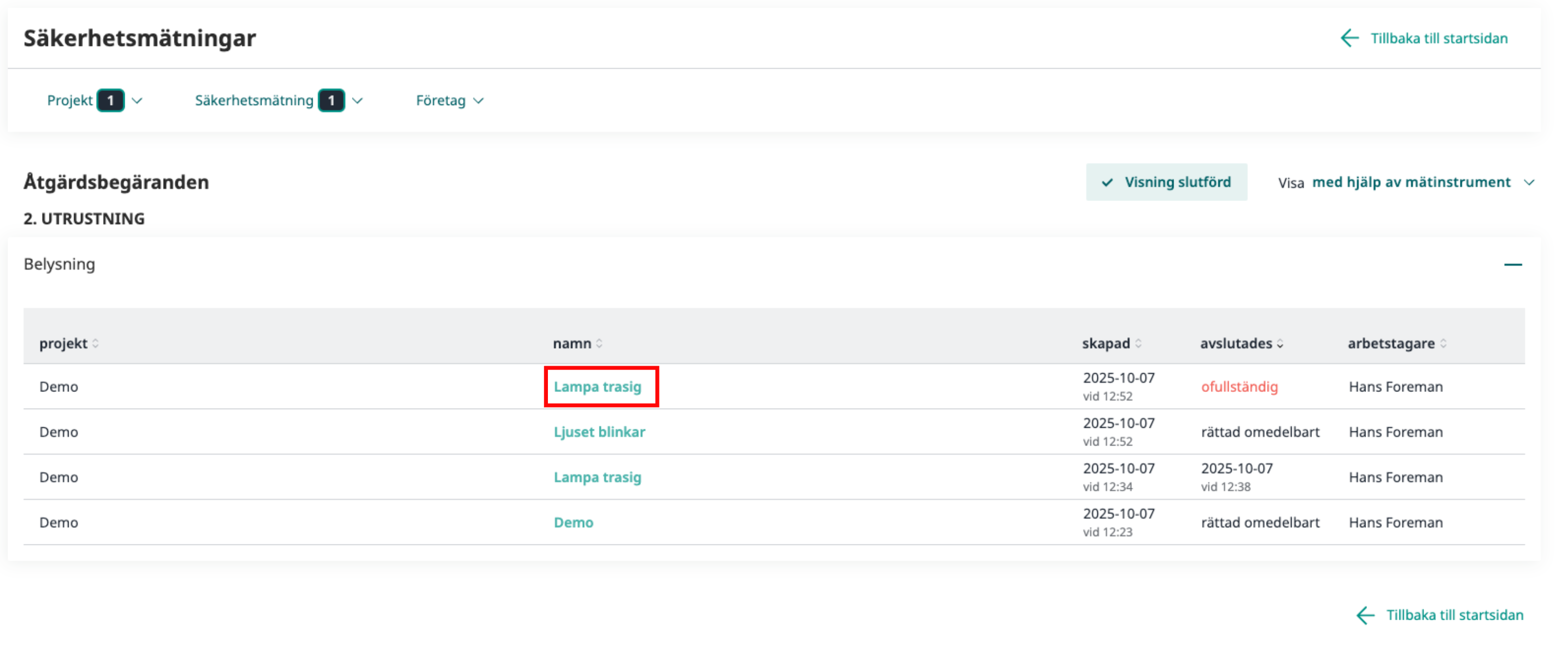 2. Gå till listvyn för Åtgärdsbegäranden.