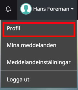 2. Klicka på ditt namn uppe till höger och välj "Profil" i menyn som öppnas.