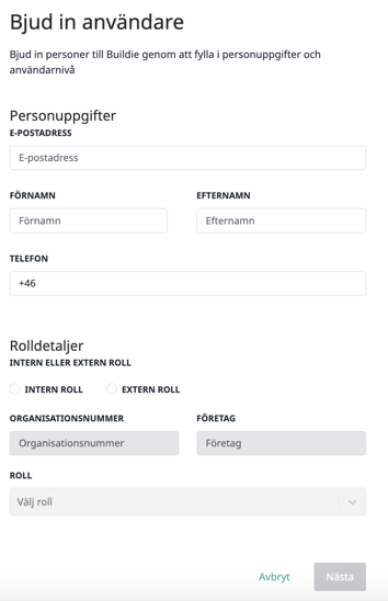 Inbjudan av extern person till Buildie och felaktiga uppgifter