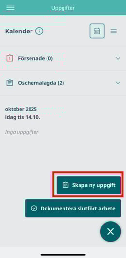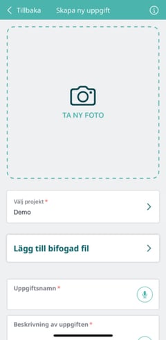 Funktionen ”Skapa ny uppgift” kan också finnas på kamerasidan om den har aktiverats i inställningarna.