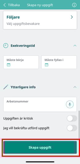 5. Tryck till sist längst ner på sidan på ”Skapa uppgift”. De personer som markerats som utförare får därefter en avisering om uppgiften.