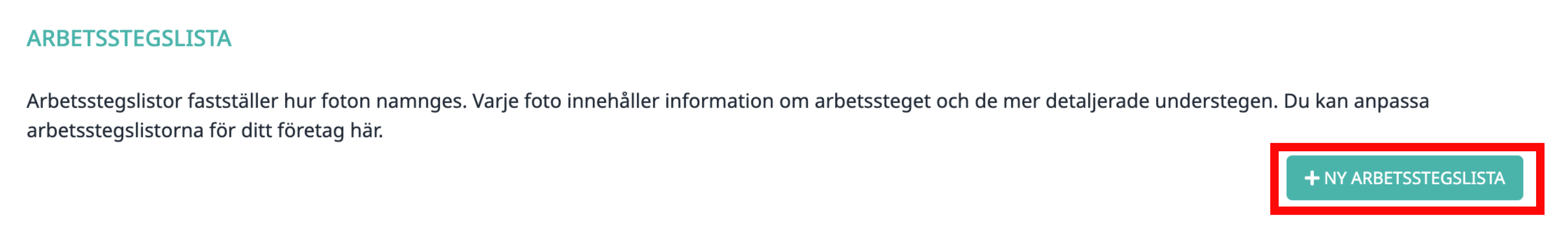 3. Skapa en ny lista genom att klicka på ”+ Ny arbetsstegslista”