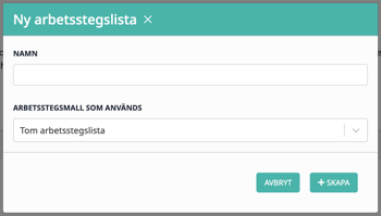5. Klicka slutligen på ”Skapa”, varefter redigeringsverktyget för Arbetsstegslistan öppnas