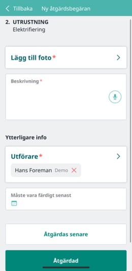 Ett fönster för åtgärdsanmärkning öppnas där du fyller i detaljerna och markerar om åtgärden utförts direkt eller ska göras senare.
