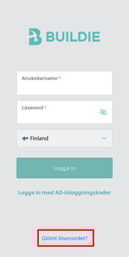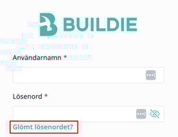 Du får en SMS-kod för lösenordsändring till det telefonnummer som är kopplat till ditt Buildie-användarkonto.