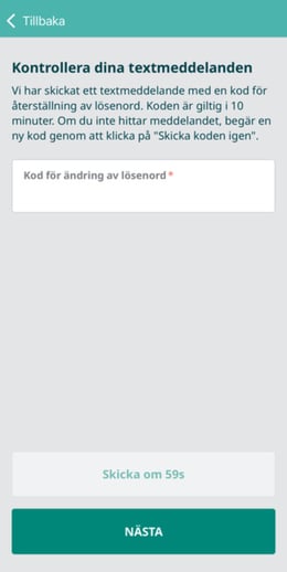 Om du inte fick SMS:et kan du begära en ny kod genom att välja "Skicka igen".