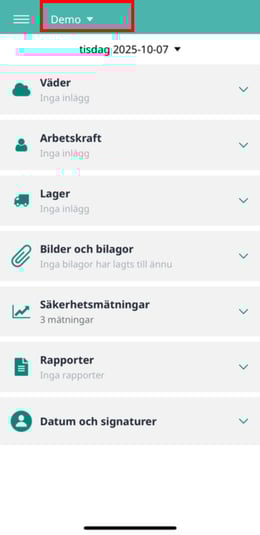 3. Välj projektet högst upp genom att trycka på namnet – en lista med tillgängliga projekt visas.