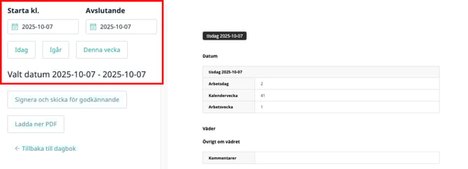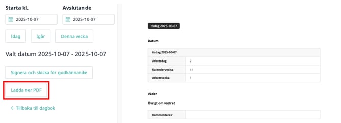 5. Klicka på "Ladda ner PDF", så laddas dagboken som en PDF-fil till din enhet.
