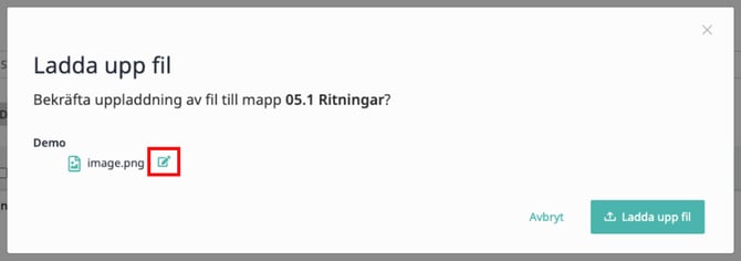 Klicka sedan för att redigera filens namn, beskrivning och lägga till en version (revision).