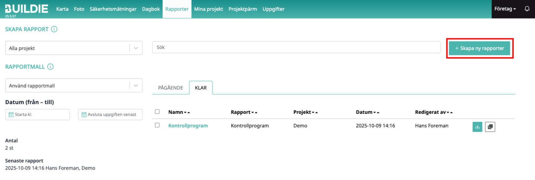 5. För att spara en färdig rapport, markera den som klar i det sista avsnittet och klicka på "Spara".