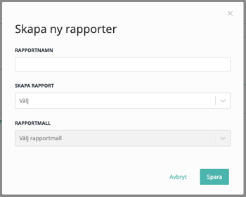 3. Ange ett namn för rapporten, välj vilket projekt rapporten gäller och vilken rapportmall som ska användas. Klicka på "Spara" för att gå vidare till att fylla i rapporten.