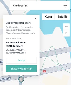 8. Du kan antingen fylla i rapporten helt och markera den som färdig längst ner på sidan, eller återgå till kartvyn – i så fall visas rapporten som Pågående.