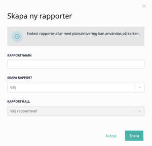 Om rapportmallen inte innehåller ett platsfält visas den inte som valbar när du skapar rapporten via kartan.