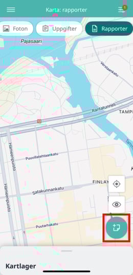3. I det nedre hörnet av kartan hittar du knappen för att lägga till rapporter.