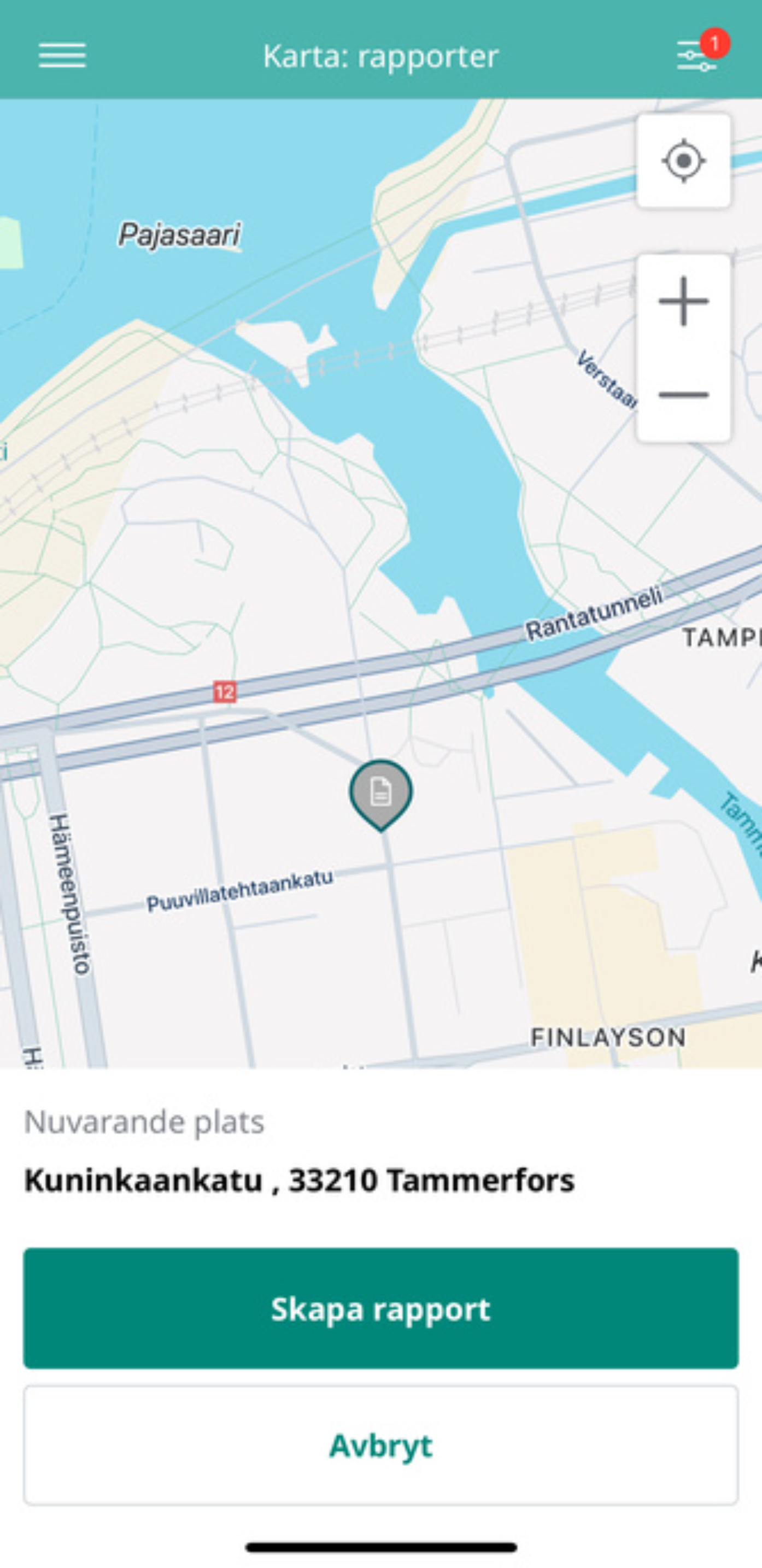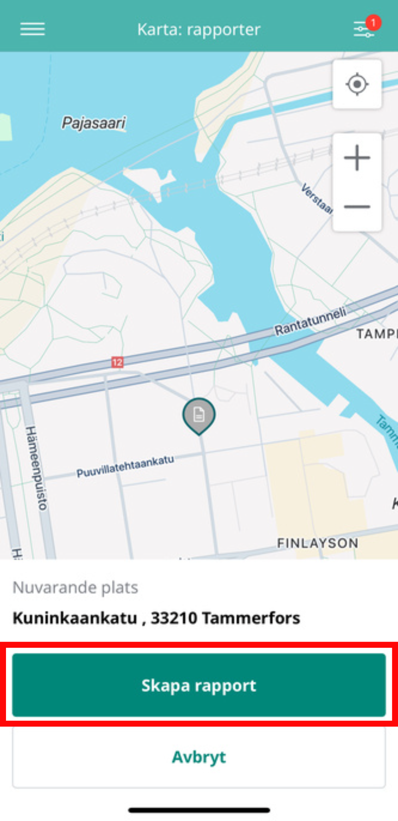 Skapa rapporter på kartan i mobilappen