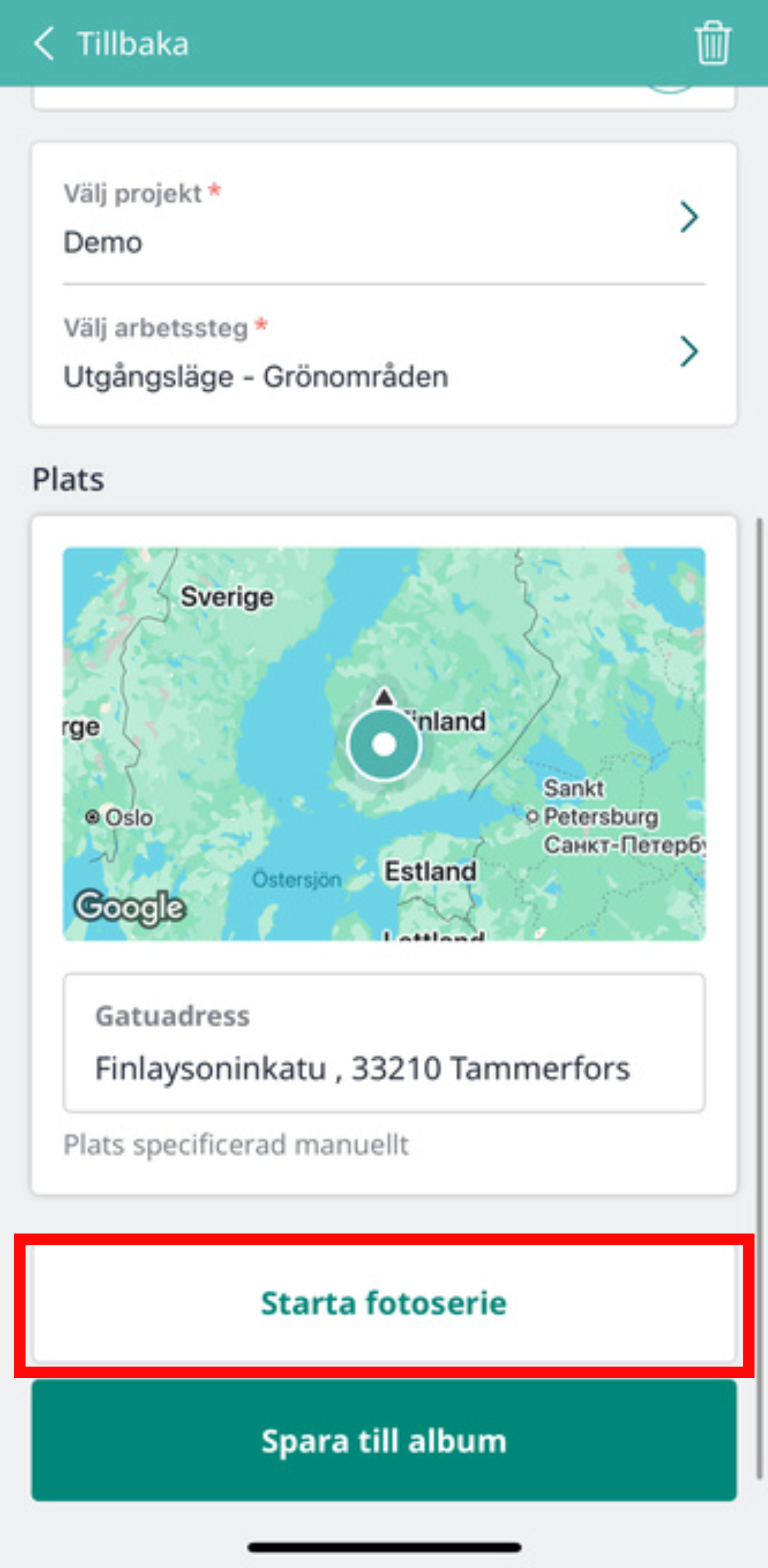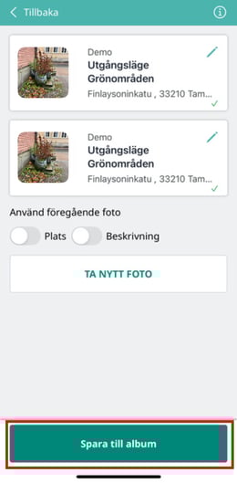 6. Spara bilderna i serien genom att trycka på ”Spara i albumet”.