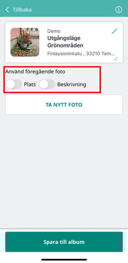 4. Välj om samma platsinformation och/eller beskrivning ska användas för varje bild i serien