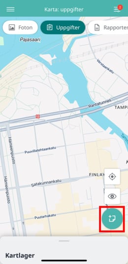3. I det nedre hörnet av kartan hittar du knappen för att lägga till uppgifter.
