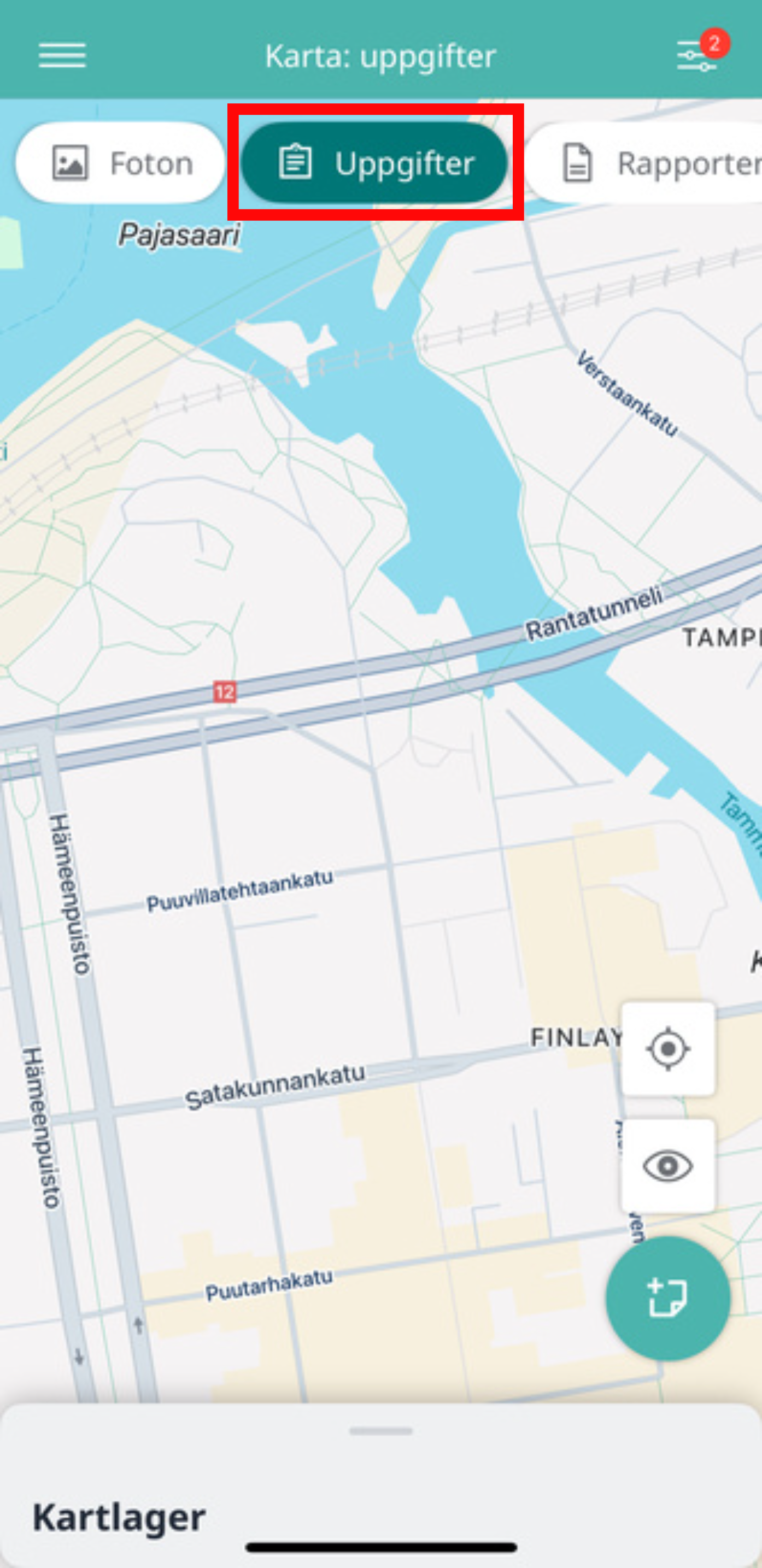 2. Välj "Uppgifter" högst upp på kartan.