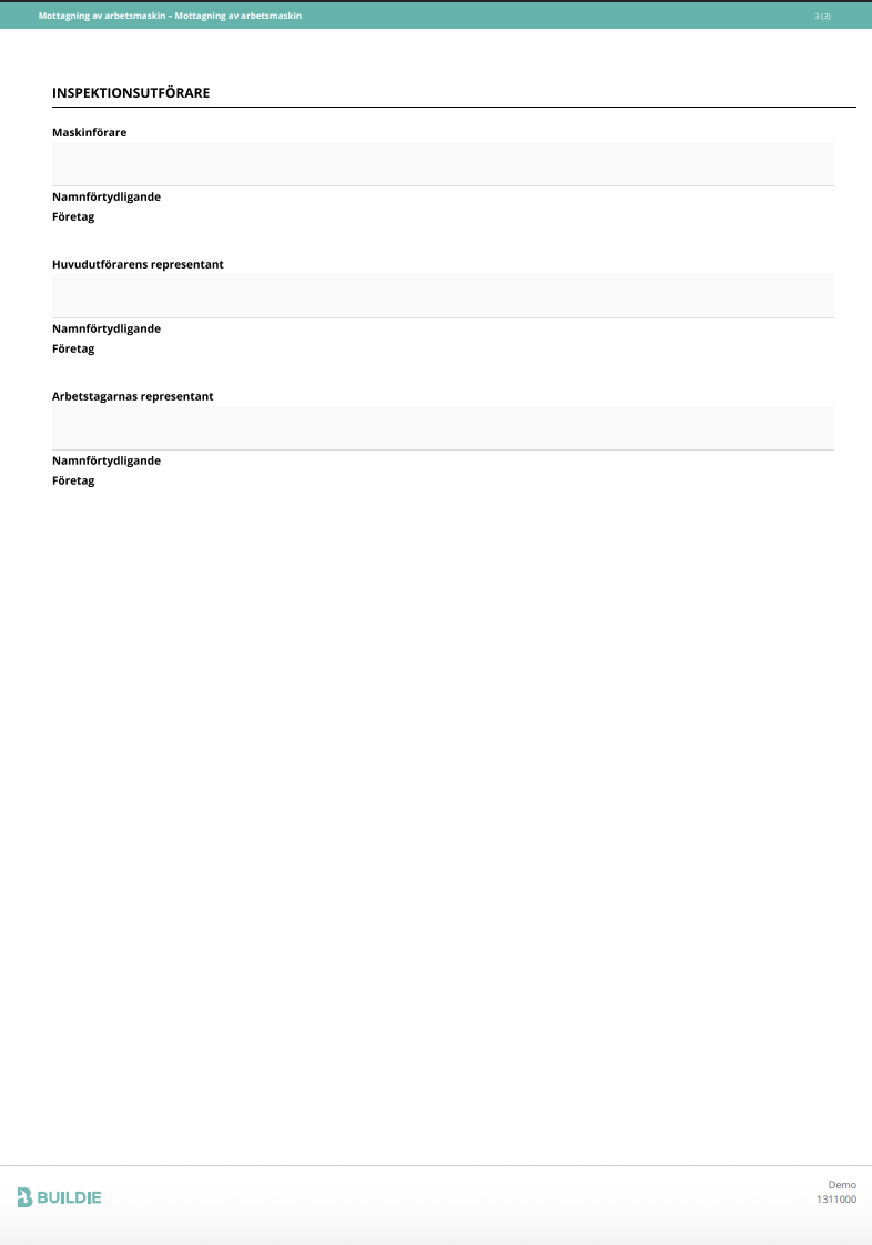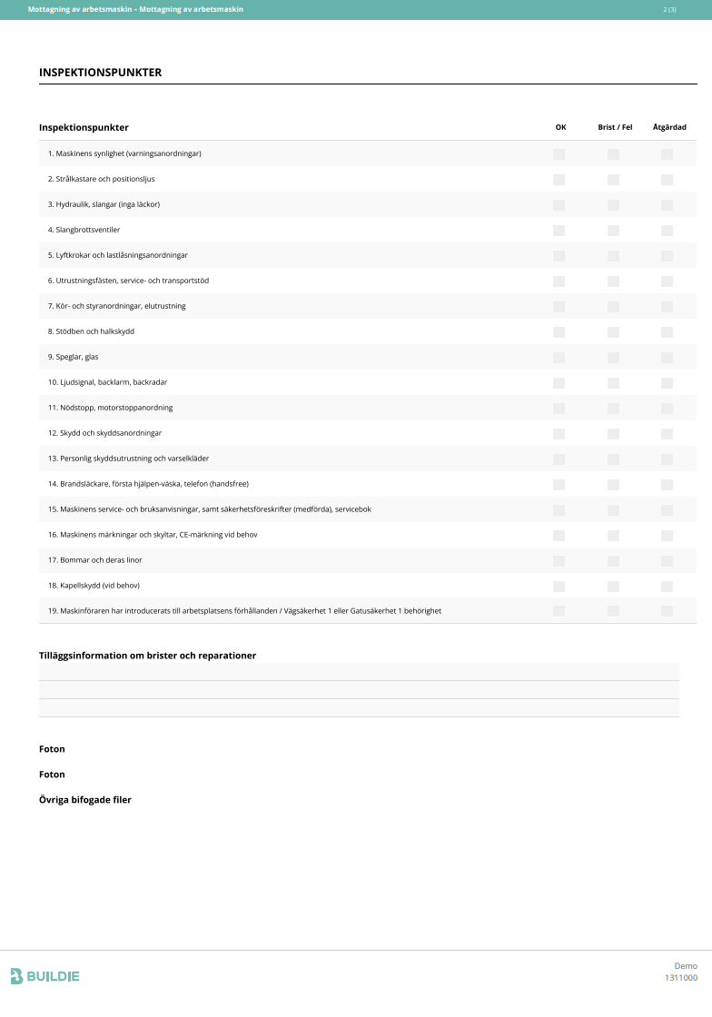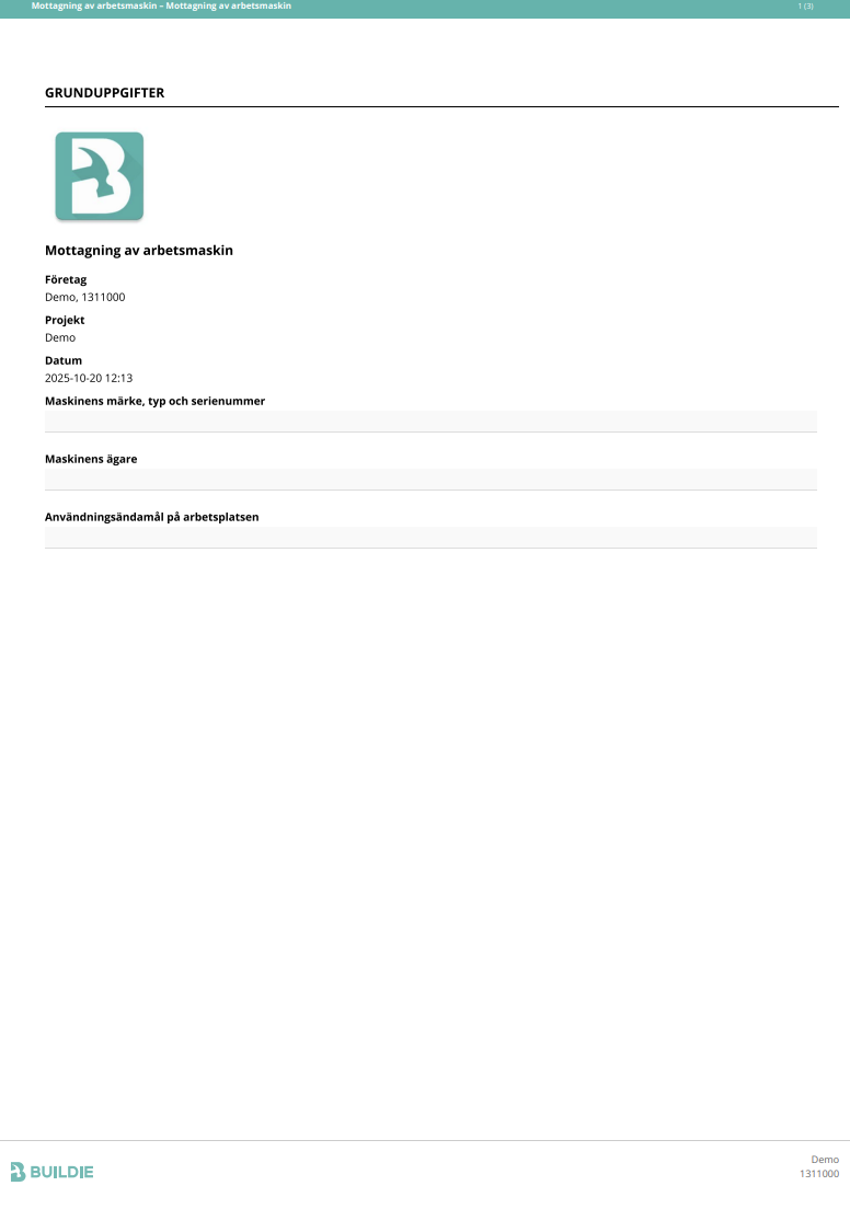 Mottagning av arbetsmaskin