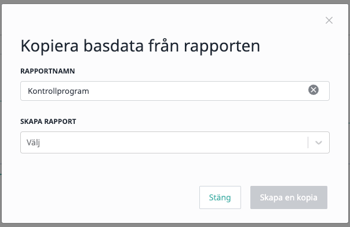 Rapportens grunduppgifter kopieras automatiskt, med undantag för bilagor och signaturer.