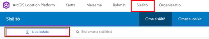 6. Siirry uudelleen Sisältö-välilehdelle ja klikkaa Uusi kohde -painiketta