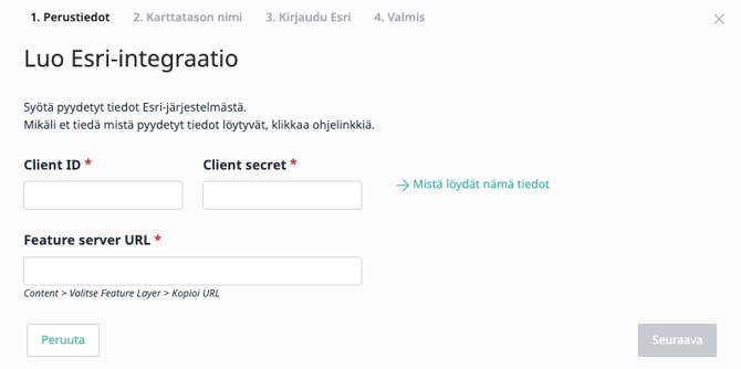 Feature Server URL: löytyy aiemmin luomastasi Feature Layer -tasosta.