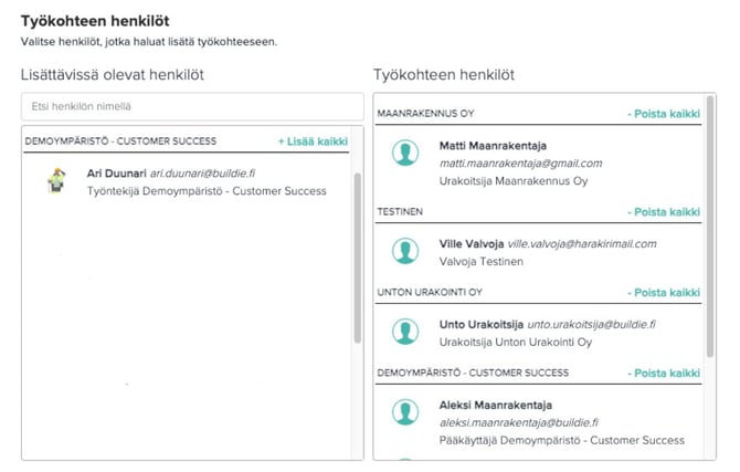 5. Rullaa alas "Työkohteen henkilöt" -osioon