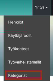2. Valitse Yritys-valikosta "Kategoriat"