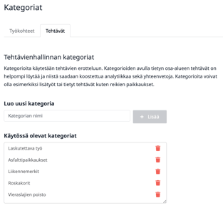 Kategorioiden luominen työkohteille ja tehtäville