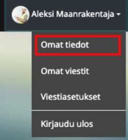 2. Klikkaa oikeasta yläkulmasta nimesi kohdalta ja valitse aukeavasta valikosta "Omat tiedot"