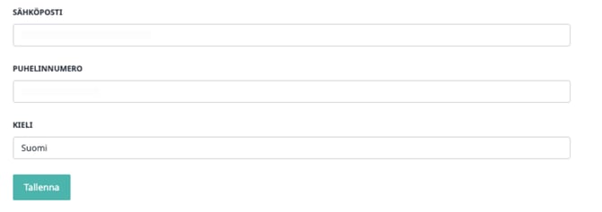 3. Syötä sähköpostiosoitteesi ja/tai puhelinnumerosi ja paina lopuksi "Tallenna".