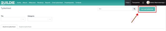 2. Avaa Yritys-valikko ja valitse "Työkohteet", tai vaihtoehtoisesti yläpalkista "Omat työkohteet"