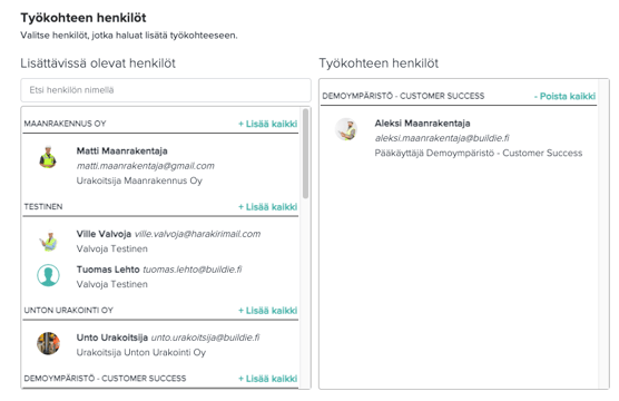 Jos haluat liittää kohteeseen kokonaan uuden käyttäjän, kutsu hänet ensin Buildieen.
