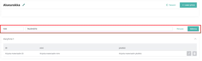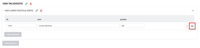 8. Syötä materiaaleja alaryhmien alle ja tallenna tallennuspainikkeesta