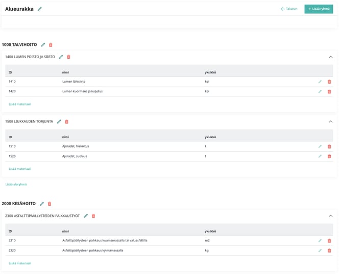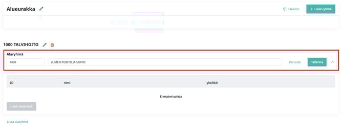 9. Lisää ryhmiä, alaryhmiä ja materiaaleja, ja tallenna ne aina lisäysten yhteydessä.