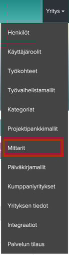 2. Valitse Yritys-valikosta "Mittarit"