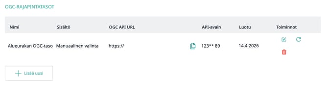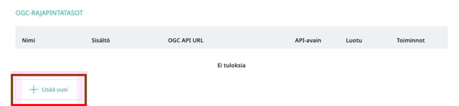 2. Siirry kohtaan "OGC-rajapintatasot" ja klikkaa "Lisää uusi"