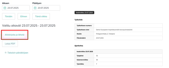 5. Klikkaa "Allekirjoita" tai "Lähetä", riippuen siitä, lähetetäänkö päiväkirjaa.