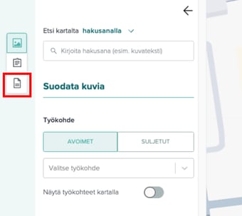3. Klikkaa karttanäkymän reunassa sijaitsevaa "Luo uusi aineisto" -toimintoa