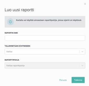 6. Anna raportille nimi, valitse työkohde sekä raporttipohja ja jatka klikkaamalla “Tallenna”-painiketta