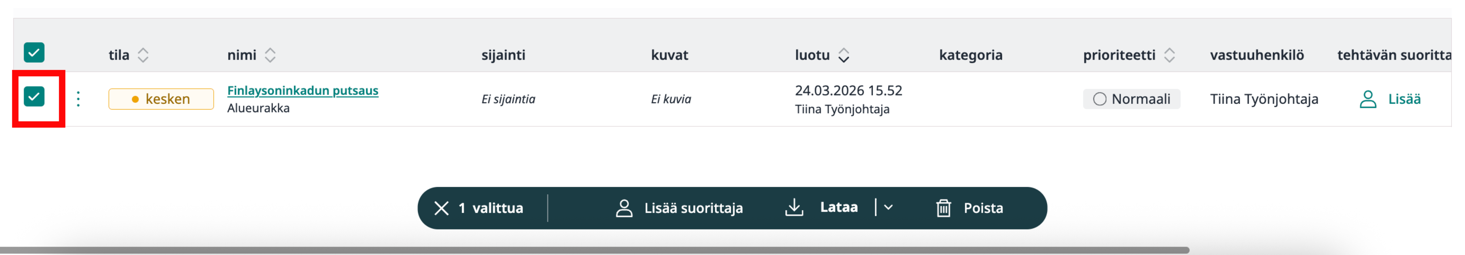 2. Valitse haluamasi tehtävät niiden edessä olevan valintaruudun avulla