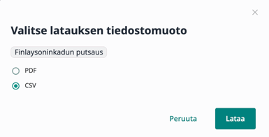 4. Valitse latausten tiedostomuoto ja klikkaa "Lataa", jolloin tiedostot latautuvat laitteellesi.