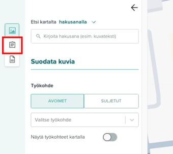 3. Klikkaa karttanäkymän reunassa sijaitsevaa "Luo uusi aineisto" -toimintoa