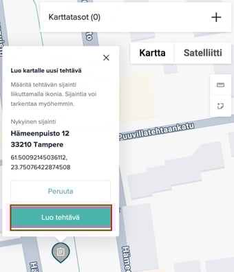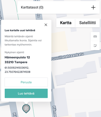 6. Anna tehtävälle nimi sekä valitse työkohde ja jatka klikkaamalla “Luo tehtävä”-painiketta