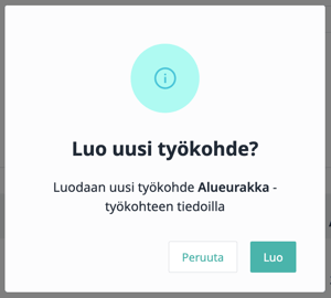 5. Nimeä työkohde. Työkohteen tiedot kopioituvat, mukaan lukien kopioidun työkohteen työvaihelista sekä päiväkirjamalli.